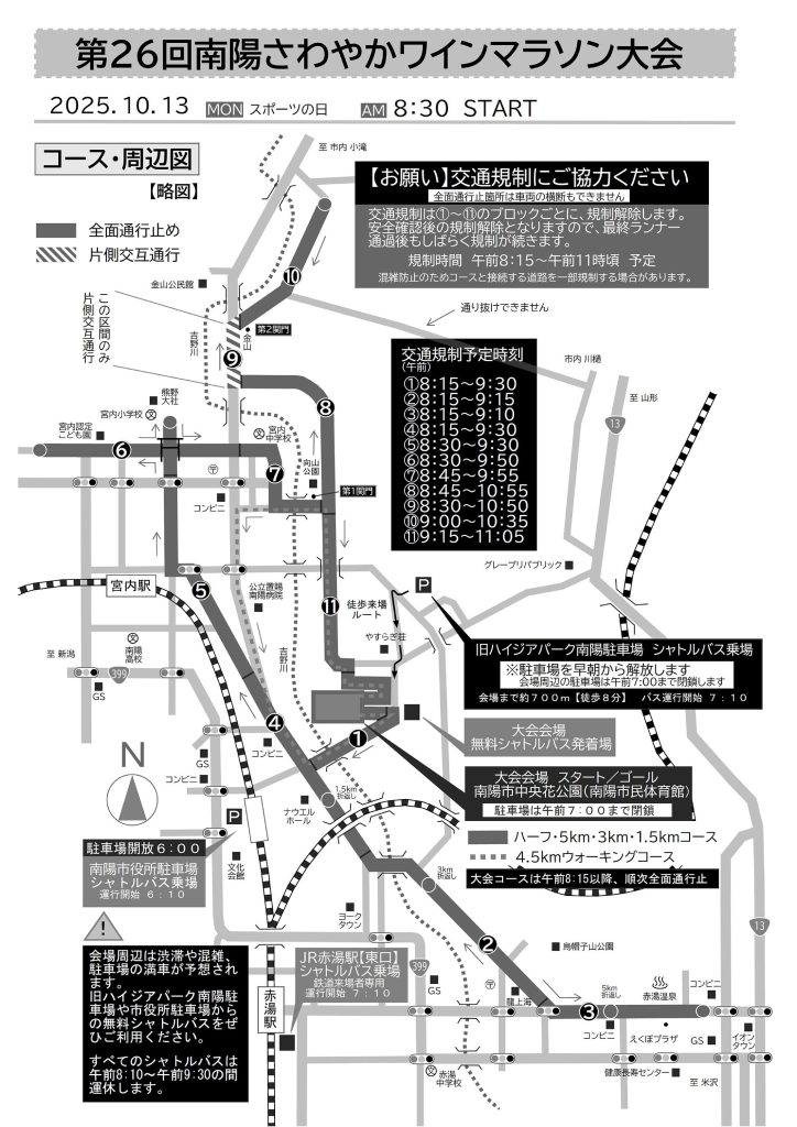 南陽さわやかワインマラソン大会に係る交通規制