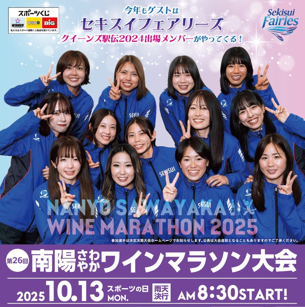 10月13日(月祝)に南陽さわやかワインマラソン大会が開催されます。