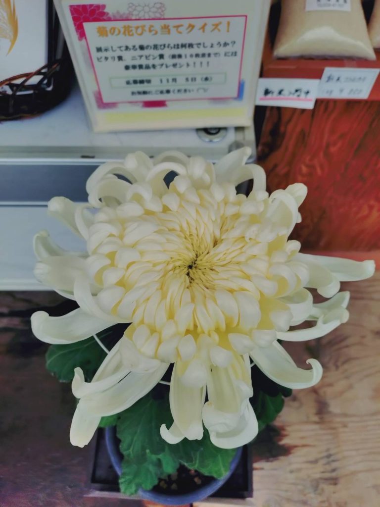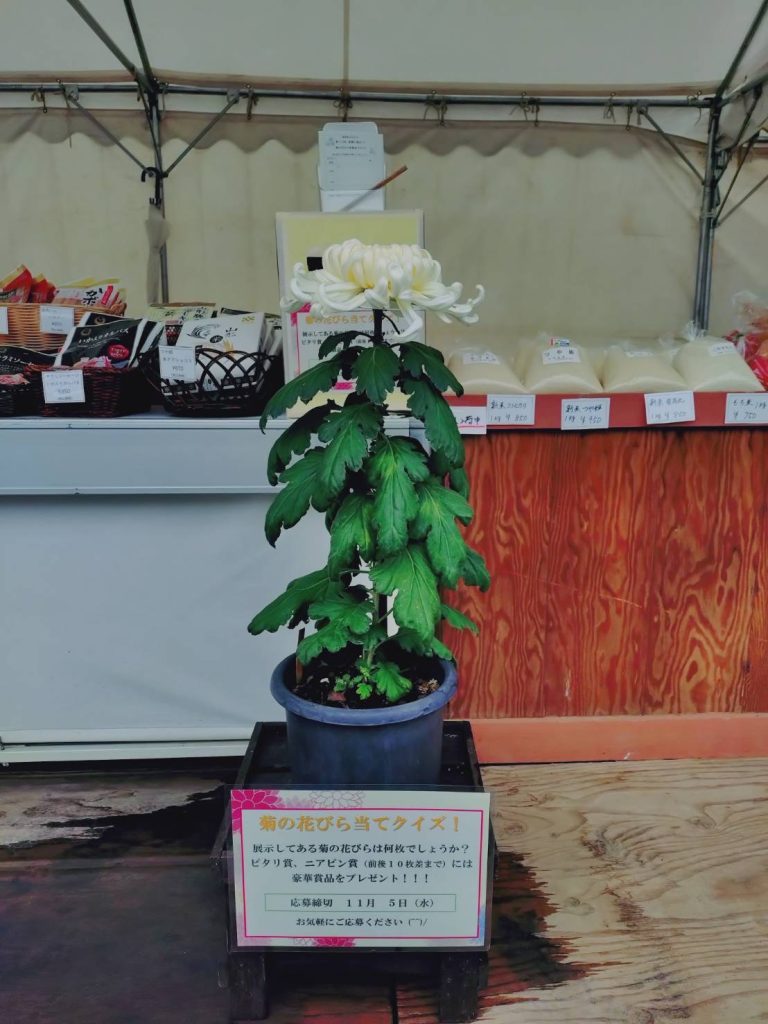 売店(観光協会テント)に展示している、菊の花びらの枚数を予想し、応募してください。